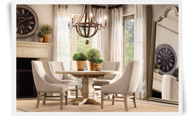 And I know what you're thinking -- white upholstery with a toddler is just trouble waiting to happen. But we liked the look of these Martine Upholstered Armchairs (in White Belgian Linen with Weathered Oak legs) so much and they match our sofa so perfectly that we're willing to be extra diligent. (And we have the Scotchgard and the Dirt Devil steamer ready to take action in a flash.)